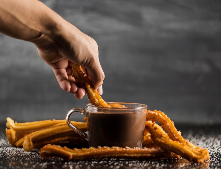 Churros recién hechos para disfrutar con nuestro café o chocolate caliente. El equilibrio perfecto para tus desayunos y meriendas.